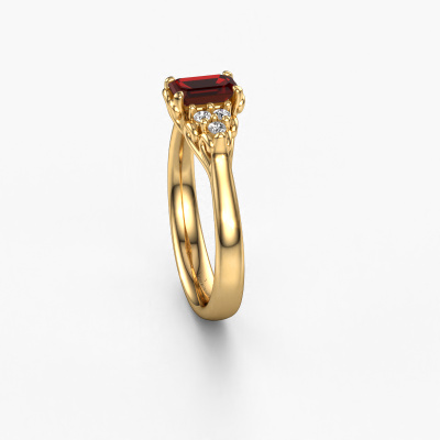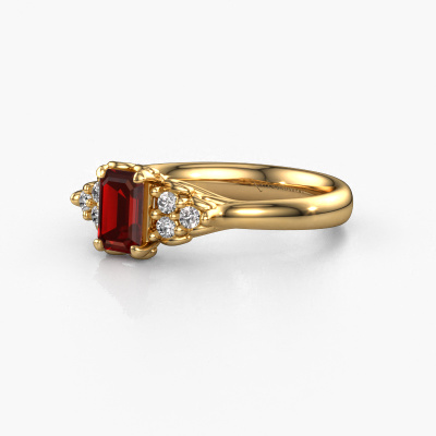 This 14 Carat gold ring is called Myrna EME and is set with 6x4 mm garnet. This filigree gold engagement ring is a true work of art! A beautifully adorned design of intricate wires. With dedication, patience and the utmost precision, our expert goldsmith will design a ring just for you. The adornment of small wiring is crafted to perfection by hand. It's a lengthy process which includes welding, crafting and polishing until our Goldsmiths are completely satisfied with the result: a perfect eye-catching ring that makes her shine with delight. Therefore the vintage filigree engagement ring is an extraordinary gift to bestow upon the love of your life. A handmade one-of-a-kind personalized ring, to be given to that special someone on that special moment when you pop the question. Isn't that wonderful? This piece of jewellery is unique in every way! Simply customize to your likingBy using our modern techniques, we can design and customize the finest quality jewels with the utmost care for you. Our engagement rings are always priced 30 percent lower than other jewellers. We make engagement rings to order so we don't have to maintain a large stock. If you have a certain budget, we are more than happy to advice you accordingly.Have you found a specific engagement ring somewhere which you would like to give to your loved one? Please feel free to express your wishes to our jewel designers because we would be honoured to turn your design into a vintage engagement ring. You can follow the development of your ring design because we use 3D drawings. This gives you a realistic preview of how your design will look. You can also preorder a dummy. A dummy is a plastic ring, which can be shaped according your ring design. You can try it on and check if its width and size are suitable for you. We will gladly send you a non-binding offer, based on a fair price/ quality ratio. It will amaze you, considering the quality of the ring and gemstones.To make it easier for you, we offer a 30 day return policy. Check our terms and conditions.