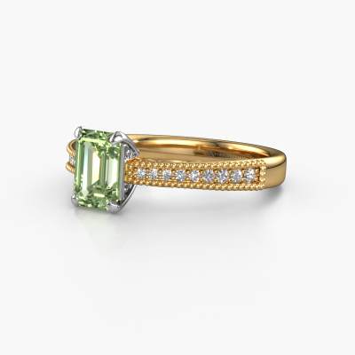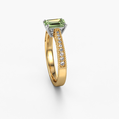 This 14 Carat gold ring is called Shonta EME and is set with green lab grown diamond. An extraordinary gold vintage ring. One that will surely make the love of your life shine like a diamond! That is what we hope to achieve. This vintage engagement ring is set with exquisite green lab grown diamonds. Whichever gemstone you choose from our selection, is up to you. The gemstone is selected with great care because we believe your engagement ring must be adorned with nothing but the most beautiful gemstone. Wouldn't you agree? Our expert goldsmith will design your ring in our own artisan studio, where the green lab grown diamond will be set with great precision. The ring will then be polished till it is absolutely perfect. Nothing but the best for the love of your life! This jewel is made by a team of passionate goldsmiths and jewel designers. This will make your crown jewel truly eye-catching.Are you on a budget? Please feel free to contact us, so we can go discuss your options. We offer our engagement rings at guaranteed best price, because we make them to order. You won't find such a price anywhere else!Have you found a specific engagement ring somewhere which you would like to give to your loved one? Please feel free to express your wishes to our jewel designers because we would be honoured to turn your design into a vintage engagement ring. You can follow the development of your ring design because we use 3D drawings. This gives you a realistic preview of how your design will look. You can also preorder a dummy. A dummy is a plastic ring, which can be shaped according your ring design. You can try it on and check if its width and size are suitable for you. We will gladly send you a non-binding offer, based on a fair price/ quality ratio. It will amaze you, considering the quality of the ring and gemstones.To make it easier for you, we offer a 30 day return policy. Check our terms and conditions.