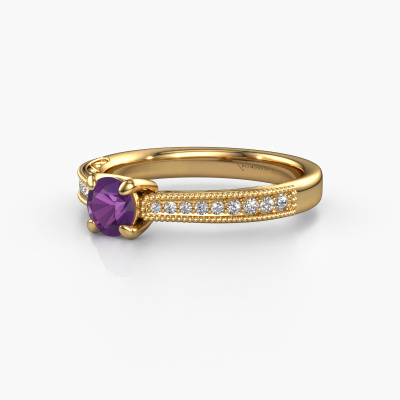 This 14 Carat gold ring is called Shonta RND and is set with 4.7 mm amethyst. This filigree gold engagement ring is a true work of art! A beautifully adorned design of intricate wires. With dedication, patience and the utmost precision, our expert goldsmith will design a ring just for you. The adornment of small wiring is crafted to perfection by hand. It's a lengthy process which includes welding, crafting and polishing until our Goldsmiths are completely satisfied with the result: a perfect eye-catching ring that makes her shine with delight. Therefore the vintage filigree engagement ring is an extraordinary gift to bestow upon the love of your life. A handmade one-of-a-kind personalized ring, to be given to that special someone on that special moment when you pop the question. Isn't that wonderful? This piece of jewellery is made just for you by our master goldsmiths in our own studio.By using our modern techniques, we can design and customize the finest quality jewels with the utmost care for you. Our engagement rings are always priced 30 percent lower than other jewellers. We make engagement rings to order so we don't have to maintain a large stock. If you have a certain budget, we are more than happy to advice you accordingly.Our team adds new designs to our online collection daily. Our designers and goldsmiths work together in creating the best design. We strive to offer a diverse collection of jewels. Perhaps you have a specific jewel design in mind. One you came across somewhere. Please contact us for a free consultation. We will make you an offer, based on a fair price/ quality ratio, that will baffle you.To make it easier for you, we offer a 30 day return policy. Check our terms and conditions.