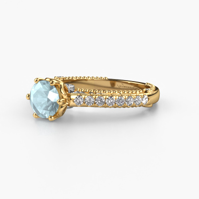 This 14 Carat gold ring is called Venita and is set with aquamarine. An extraordinary gold vintage ring. One that will surely make the love of your life shine like a diamond! That is what we hope to achieve. This vintage engagement ring is set with exquisite aquamarine. Whichever gemstone you choose from our selection, is up to you. The gemstone is selected with great care because we believe your engagement ring must be adorned with nothing but the most beautiful gemstone. Wouldn't you agree? Our expert goldsmith will design your ring in our own artisan studio, where the aquamarine will be set with great precision. The ring will then be polished till it is absolutely perfect. Nothing but the best for the love of your life! This jewel is made just for you by our master goldsmiths in our own studio.After receiving your order, our goldsmiths will passionately start the creative process of making your engagement ring in our own studio. Because we don't have a big stockpile, these costs will not be passed on to you. Our pricing is proof of that! We offer top quality jewels at lowest price, guaranteed.Our team adds new designs to our online collection daily. Our designers and goldsmiths work together in creating the best design. We strive to offer a diverse collection of jewels. Perhaps you have a specific jewel design in mind. One you came across somewhere. Please contact us for a free consultation. We will make you an offer, based on a fair price/ quality ratio, that will baffle you.To make it easier for you, we offer a 30 day return policy. Check our terms and conditions.