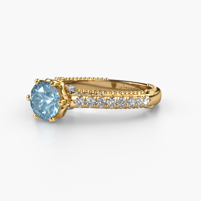 This 14 Carat gold ring is called Venita and is set with blue lab grown diamond. An extraordinary gold vintage ring. One that will surely make the love of your life shine like a diamond! That is what we hope to achieve. This vintage engagement ring is set with exquisite blue lab grown diamonds. Whichever gemstone you choose from our selection, is up to you. The gemstone is selected with great care because we believe your engagement ring must be adorned with nothing but the most beautiful gemstone. Wouldn't you agree? Our expert goldsmith will design your ring in our own artisan studio, where the blue lab grown diamond will be set with great precision. The ring will then be polished till it is absolutely perfect. Nothing but the best for the love of your life! This jewel is made just for you by our master goldsmiths in our own studio.After receiving your order, our goldsmiths will passionately start the creative process of making your engagement ring in our own studio. Because we don't have a big stockpile, these costs will not be passed on to you. Our pricing is proof of that! We offer top quality jewels at lowest price, guaranteed.Our team adds new designs to our online collection daily. Our designers and goldsmiths work together in creating the best design. We strive to offer a diverse collection of jewels. Perhaps you have a specific jewel design in mind. One you came across somewhere. Please contact us for a free consultation. We will make you an offer, based on a fair price/ quality ratio, that will baffle you.To make it easier for you, we offer a 30 day return policy. Check our terms and conditions.
