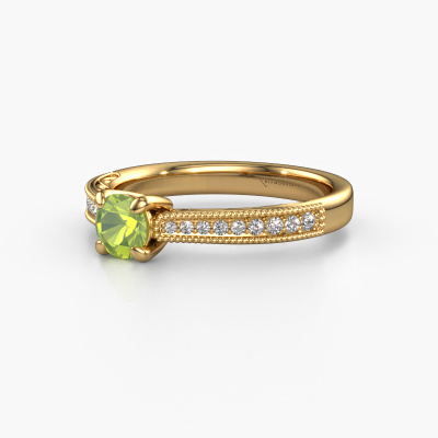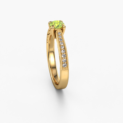 This 14 Carat gold ring is called Shonta RND and is set with 4.7 mm peridot. This filigree gold engagement ring is a true work of art! A beautifully adorned design of intricate wires. With dedication, patience and the utmost precision, our expert goldsmith will design a ring just for you. The adornment of small wiring is crafted to perfection by hand. It's a lengthy process which includes welding, crafting and polishing until our Goldsmiths are completely satisfied with the result: a perfect eye-catching ring that makes her shine with delight. Therefore the vintage filigree engagement ring is an extraordinary gift to bestow upon the love of your life. A handmade one-of-a-kind personalized ring, to be given to that special someone on that special moment when you pop the question. Isn't that wonderful? This piece of jewellery is made just for you by our master goldsmiths in our own studio.By using our modern techniques, we can design and customize the finest quality jewels with the utmost care for you. Our engagement rings are always priced 30 percent lower than other jewellers. We make engagement rings to order so we don't have to maintain a large stock. If you have a certain budget, we are more than happy to advice you accordingly.Our team adds new designs to our online collection daily. Our designers and goldsmiths work together in creating the best design. We strive to offer a diverse collection of jewels. Perhaps you have a specific jewel design in mind. One you came across somewhere. Please contact us for a free consultation. We will make you an offer, based on a fair price/ quality ratio, that will baffle you.To make it easier for you, we offer a 30 day return policy. Check our terms and conditions.