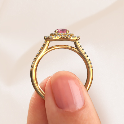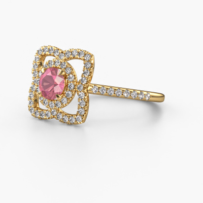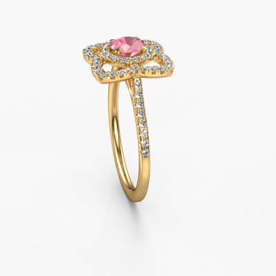 This 14 Carat gold ring is called Cleopatra and is set with tourmaline pink. An extraordinary gold vintage ring. One that will surely make the love of your life shine like a diamond! That is what we hope to achieve. This vintage engagement ring is set with exquisite tourmaline pink. Whichever gemstone you choose from our selection, is up to you. The gemstone is selected with great care because we believe your engagement ring must be adorned with nothing but the most beautiful gemstone. Wouldn't you agree? Our expert goldsmith will design your ring in our own artisan studio, where the tourmaline pink will be set with great precision. The ring will then be polished till it is absolutely perfect. Nothing but the best for the love of your life! This jewel is made just for you, with attention to detail and design.After receiving your order, our goldsmiths will passionately start the creative process of making your engagement ring in our own studio. Because we don't have a big stockpile, these costs will not be passed on to you. Our pricing is proof of that! We offer top quality jewels at lowest price, guaranteed.Have you found a specific engagement ring somewhere which you would like to give to your loved one? Please feel free to express your wishes to our jewel designers because we would be honoured to turn your design into a vintage engagement ring. You can follow the development of your ring design because we use 3D drawings. This gives you a realistic preview of how your design will look. You can also preorder a dummy. A dummy is a plastic ring, which can be shaped according your ring design. You can try it on and check if its width and size are suitable for you. We will gladly send you a non-binding offer, based on a fair price/ quality ratio. It will amaze you, considering the quality of the ring and gemstones.To make it easier for you, we offer a 30 day return policy. Check our terms and conditions.