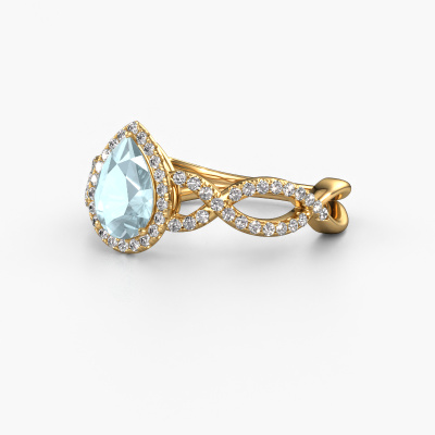 This 14 Carat gold ring is called Dionne pear and is set with 7x5 mm aquamarine. Does your girlfriend fancy exclusive jewellery? Or would you like to show her that she deserves the finest jewellery? This gold ring is pure craftsmanship, love and passion combined with the latest techniques coming together in perfect harmony. It requires a keen eye, patience and a skilful hand to mould this ring into perfection. Just the job for our expert goldsmith! The aquamarine set gemstones gives this gold ring an extra glamorous appearance. Customize the style of the twist engagement ring to her liking with a wide variety of precious metals and gemstones which you select. That is how you create a unique ring for the most exclusive woman in your life! This jewel is created to add sparkle to your finger, each jewel is lovingly made by hand by our goldsmiths.Are you on a budget? Please feel free to contact us, so we can go discuss your options. We offer our engagement rings at guaranteed best price, because we make them to order. You won't find such a price anywhere else!Different styles of new rings are made daily by our team. Perhaps you have found a pavé solitaire engagement ring somewhere. One you would like to give to your loved one. Please feel free to share your thoughts and design with our jewel designers. We would love to turn your design into a exclusive engagement ring. You can follow the development of your ring design because we use very detailed 3D drawings. On top of that, you can order a dummy of the design. A dummy is a plastic ring, which can be shaped according your ring design. You can try it on and check if the engagement ring is up to standard. We will gladly send you a non-binding offer, based on a fair price/ quality ratio. The offer will baffle you, considering the quality of the ring and gemstones.To make it easier for you, we offer a 30 day return policy. Check our terms and conditions.