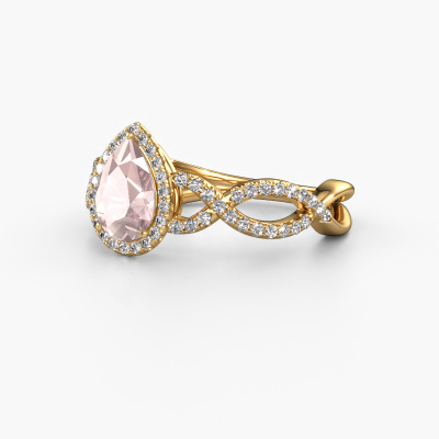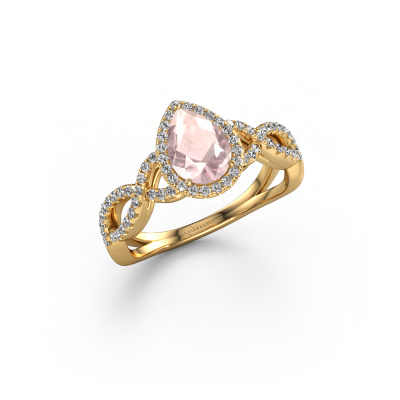 This 14 Carat gold ring is called Dionne pear and is set with 7x5 mm morganite champagne. Does your girlfriend fancy exclusive jewellery? Or would you like to show her that she deserves the finest jewellery? This gold ring is pure craftsmanship, love and passion combined with the latest techniques coming together in perfect harmony. It requires a keen eye, patience and a skilful hand to mould this ring into perfection. Just the job for our expert goldsmith! The morganite champagne set gemstones gives this gold ring an extra glamorous appearance. Customize the style of the twist engagement ring to her liking with a wide variety of precious metals and gemstones which you select. That is how you create a unique ring for the most exclusive woman in your life! This jewel is created to add sparkle to your finger, each jewel is lovingly made by hand by our goldsmiths.Are you on a budget? Please feel free to contact us, so we can go discuss your options. We offer our engagement rings at guaranteed best price, because we make them to order. You won't find such a price anywhere else!Different styles of new rings are made daily by our team. Perhaps you have found a pavé solitaire engagement ring somewhere. One you would like to give to your loved one. Please feel free to share your thoughts and design with our jewel designers. We would love to turn your design into a exclusive engagement ring. You can follow the development of your ring design because we use very detailed 3D drawings. On top of that, you can order a dummy of the design. A dummy is a plastic ring, which can be shaped according your ring design. You can try it on and check if the engagement ring is up to standard. We will gladly send you a non-binding offer, based on a fair price/ quality ratio. The offer will baffle you, considering the quality of the ring and gemstones.To make it easier for you, we offer a 30 day return policy. Check our terms and conditions.