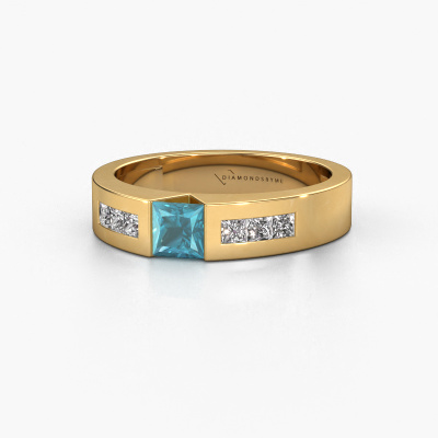 This 14 Carat gold ring is called Arlena 2 and is set with 4 mm blue topaz. This modern gold Engagement ring is a true masterpiece! Our expert goldsmith uses special techniques during crafting of this tension set ring to make sure the blue topaz of this gold ring is fixed properly. The effect is that light fall reflects beautifully on the gemstone, which gives the ring its maximum shine and glamorous appearance. The result is a unique ring, with a trendy appearance, passionately handcrafted to perfection by our artisan goldsmith. A one-of-a-kind ring, designed for the love of your life! This jewel is unique in every way! Simply customize to your likingBy using our modern techniques, we can design and customize the finest quality jewels with the utmost care for you. Our Engagement rings are always priced 30 percent lower than other jewellers. We make Engagement rings to order so we don't have to maintain a large stock. If you have a certain budget, we are more than happy to advice you accordingly.Have you found a specific Engagement ring somewhere which you would like to give to your loved one? Please feel free to express your wishes to our jewel designers because we would be honoured to turn your design into a modern Engagement ring. You can follow the development of your ring design because we use 3D drawings. This gives you a realistic preview of how your design will look. You can also preorder a dummy. A dummy is a plastic ring, which can be shaped according your ring design. You can try it on and check if its width and size are suitable for you. We will gladly send you a non-binding offer, based on a fair price/ quality ratio. It will amaze you, considering the quality of the ring and gemstones.To make it easier for you, we offer a 30 day return policy. Check our terms and conditions.