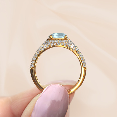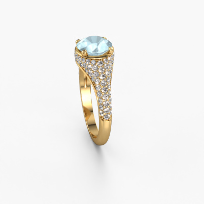 This 14 Carat gold ring is called Lovella and is set with 7 mm aquamarine. Does your girlfriend fancy exclusive jewellery? Or would you like to show her that she deserves the finest jewellery? This gold ring is pure craftsmanship, love and passion combined with the latest techniques coming together in perfect harmony. It requires a keen eye, patience and a skilful hand to mould this ring into perfection. Just the job for our expert goldsmith! The aquamarine set gemstones gives this gold ring an extra glamorous appearance. Customize the style of the micro pave engagement ring to her liking with a wide variety of precious metals and gemstones which you select. That is how you create a unique ring for the most exclusive woman in your life! This jewel is made just for you, with attention to detail and design.By using a combination of the latest modern techniques, combined with ancient crafting, we can make all our engagement rings in our own studio. Each jewel is made to order. This is advantageous because we can offer you a price you won't find anywhere else.Our team adds new designs to our online collection daily. Our designers and goldsmiths work together in creating the best design. We strive to offer a diverse collection of jewels. Perhaps you have a specific jewel design in mind. One you came across somewhere. Please contact us for a free consultation. We will make you an offer, based on a fair price/ quality ratio, that will baffle you.To make it easier for you, we offer a 30 day return policy. Check our terms and conditions.