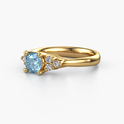 This 14 Carat gold ring is called Monika RND and is set with 5.5 mm blue lab grown diamond. Does your girlfriend fancy exclusive jewellery? Or would you like to show her that she deserves the finest jewellery? This gold ring is pure craftsmanship, love and passion combined with the latest techniques coming together in perfect harmony. It requires a keen eye, patience and a skilful hand to mould this ring into perfection. Just the job for our expert goldsmith! The blue lab grown diamonds set gemstones gives this gold ring an extra glamorous appearance. Customize the style of the ajour engagement ring to her liking with a wide variety of precious metals and gemstones which you select. That is how you create a unique ring for the most exclusive woman in your life! This jewel is made with passion and love by one of our master goldsmiths.Are you on a budget? Please feel free to contact us, so we can go discuss your options. We offer our engagement rings at guaranteed best price, because we make them to order. You won't find such a price anywhere else!Have you found a specific engagement ring somewhere which you would like to give to your loved one? Please feel free to express your wishes to our jewel designers because we would be honoured to turn your design into a classic engagement ring. You can follow the development of your ring design because we use 3D drawings. This gives you a realistic preview of how your design will look. You can also preorder a dummy. A dummy is a plastic ring, which can be shaped according your ring design. You can try it on and check if its width and size are suitable for you. We will gladly send you a non-binding offer, based on a fair price/ quality ratio. It will amaze you, considering the quality of the ring and gemstones.To make it easier for you, we offer a 30 day return policy. Check our terms and conditions.