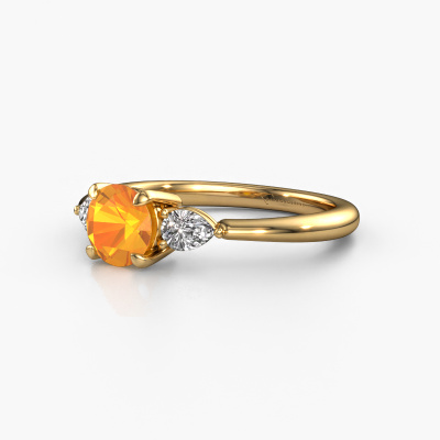 This 14 Carat gold ring is called Chanou RND and is set with 6 mm citrin. Does your girlfriend fancy exclusive jewellery? Or would you like to show her that she deserves the finest jewellery? This gold ring is pure craftsmanship, love and passion combined with the latest techniques coming together in perfect harmony. It requires a keen eye, patience and a skilful hand to mould this ring into perfection. Just the job for our expert goldsmith! The citrin set gemstones gives this gold ring an extra glamorous appearance. Customize the style of the charming engagement ring to her liking with a wide variety of precious metals and gemstones which you select. That is how you create a unique ring for the most exclusive woman in your life! This jewel is made to shine bright around your finger. Each jewel is hand made with love by our goldsmiths.By using a combination of the latest modern techniques, combined with ancient crafting, we can make all our engagement rings in our own studio. Each jewel is made to order. This is advantageous because we can offer you a price you won't find anywhere else.Our team adds new designs to our online collection daily. Our designers and goldsmiths work together in creating the best design. We strive to offer a diverse collection of jewels. Perhaps you have a specific jewel design in mind. One you came across somewhere. Please contact us for a free consultation. We will make you an offer, based on a fair price/ quality ratio, that will baffle you.To make it easier for you, we offer a 30 day return policy. Check our terms and conditions.