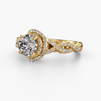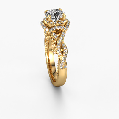 The ring shown above is called the Leora. We call this type of ring a halo ring because it has one centre gemstone and a band that is also pave set with gemstones. The 14 Carat gold engagement ring is set with a round 1.00 crt diamond centre stone and the band is pave set with lab-grown diamonds. What makes this vintage gold halo ring special are the smaller sized stones embracing the centre stone. This gorgeous engagement ring is called a halo ring because the smaller gemstones give the centre stone a halo of surrounding light. In order for the smaller stones to enhance the centre stone, they have to be placed so there is no interference of light. And that's when our expert goldsmiths come in. Each individual stone is carefully set in the ring by hand. During manufacturing, light fall is constantly monitored to make sure the special halo is still visible. In the end you get a unique engagement ring, with a diamond of your choosing at its centre. You can imagine the effect of a ring of such significance when you give it to her on her special day to shine. By using our modern techniques, we can design and customize the finest quality jewels with the utmost care for you. Our engagement rings are always priced 30 percent lower than other jewellers. We make engagement rings to order so we don't have to maintain a large stock. If you have a certain budget, we are more than happy to advice you accordingly.Our designers and goldsmiths work together each day, creating new jewels. Perhaps you have found a nice vintage engagement ring somewhere, which can be used to customize your unique ring. Please feel free to contact us. We will make you an offer, based on a fair price/ quality ratio, which will amaze you.To make it easier for you, we offer a 30 day return policy. Check our terms and conditions.