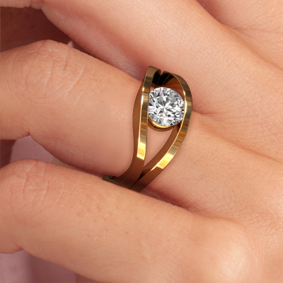 This 14 Carat gold ring is called Sigrid 1 and is set with 1.00 crt diamond. This design gold engagement ring is a true masterpiece! Our expert goldsmith uses special techniques during crafting of this tension set ring to make sure the diamond of this gold ring is fixed properly. The effect is that light fall reflects beautifully on the gemstone, which gives the ring its maximum shine and glamorous appearance. The result is a unique ring, with a trendy appearance, passionately handcrafted to perfection by our artisan goldsmith. A one-of-a-kind ring, designed for the love of your life! This jewel is made to shine bright around your finger. Each jewel is hand made with love by our goldsmiths.By using our modern techniques, we can design and customize the finest quality jewels with the utmost care for you. Our engagement rings are always priced 30 percent lower than other jewellers. We make engagement rings to order so we don't have to maintain a large stock. If you have a certain budget, we are more than happy to advice you accordingly.Different styles of new rings are made daily by our team. Perhaps you have found a solitaire engagement ring somewhere. One you would like to give to your loved one. Please feel free to share your thoughts and design with our jewel designers. We would love to turn your design into a design engagement ring. You can follow the development of your ring design because we use very detailed 3D drawings. On top of that, you can order a dummy of the design. A dummy is a plastic ring, which can be shaped according your ring design. You can try it on and check if the engagement ring is up to standard. We will gladly send you a non-binding offer, based on a fair price/ quality ratio. The offer will baffle you, considering the quality of the ring and gemstones.To make it easier for you, we offer a 30 day return policy. Check our terms and conditions.