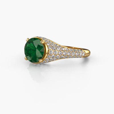 This 14 Carat gold ring is called Lovella and is set with 7 mm emerald. Does your girlfriend fancy exclusive jewellery? Or would you like to show her that she deserves the finest jewellery? This gold ring is pure craftsmanship, love and passion combined with the latest techniques coming together in perfect harmony. It requires a keen eye, patience and a skilful hand to mould this ring into perfection. Just the job for our expert goldsmith! The emerald set gemstones gives this gold ring an extra glamorous appearance. Customize the style of the micro pave engagement ring to her liking with a wide variety of precious metals and gemstones which you select. That is how you create a unique ring for the most exclusive woman in your life! This jewel is made just for you, with attention to detail and design.By using a combination of the latest modern techniques, combined with ancient crafting, we can make all our engagement rings in our own studio. Each jewel is made to order. This is advantageous because we can offer you a price you won't find anywhere else.Our team adds new designs to our online collection daily. Our designers and goldsmiths work together in creating the best design. We strive to offer a diverse collection of jewels. Perhaps you have a specific jewel design in mind. One you came across somewhere. Please contact us for a free consultation. We will make you an offer, based on a fair price/ quality ratio, that will baffle you.To make it easier for you, we offer a 30 day return policy. Check our terms and conditions.