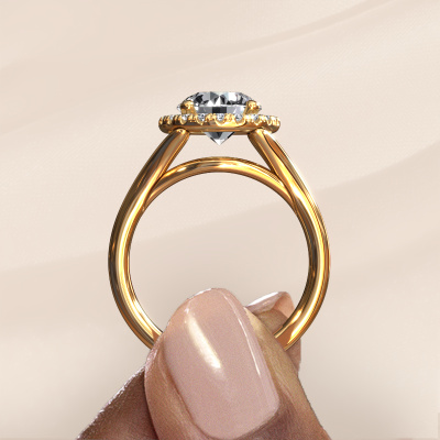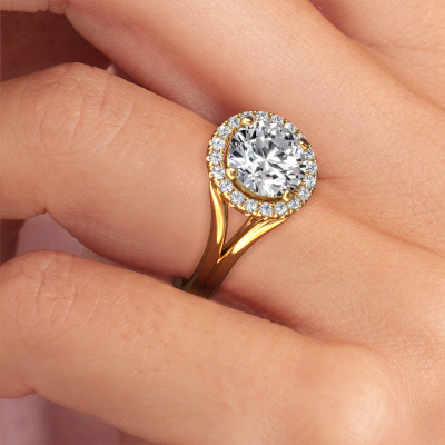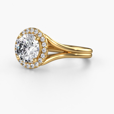 The ring shown above is called the Verla rnd 1. We call this type of ring a halo ring because it has one centre gemstone and a band that is also pave set with gemstones. The 14 Carat gold engagement ring is set with a round 2.00 crt lab grown diamond centre stone and the band is pave set with diamonds. What makes this classic gold halo ring special are the smaller sized stones embracing the centre stone. This gorgeous engagement ring is called a halo ring because the smaller gemstones give the centre stone a halo of surrounding light. In order for the smaller stones to enhance the centre stone, they have to be placed so there is no interference of light. And that's when our expert goldsmiths come in. Each individual stone is carefully set in the ring by hand. During manufacturing, light fall is constantly monitored to make sure the special halo is still visible. In the end you get a unique engagement ring, with a lab grown diamond of your choosing at its centre. You can imagine the effect of a ring of such significance when you give it to her on her special day to shine. By using a combination of the latest modern techniques, combined with ancient crafting, we can make all our engagement rings in our own studio. Each jewel is made to order. This is advantageous because we can offer you a price you won't find anywhere else.Our team adds new designs to our online collection daily. Our designers and goldsmiths work together in creating the best design. We strive to offer a diverse collection of jewels. Perhaps you have a specific jewel design in mind. One you came across somewhere. Please contact us for a free consultation. We will make you an offer, based on a fair price/ quality ratio, that will baffle you.To make it easier for you, we offer a 30 day return policy. Check our terms and conditions.
