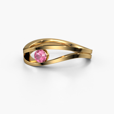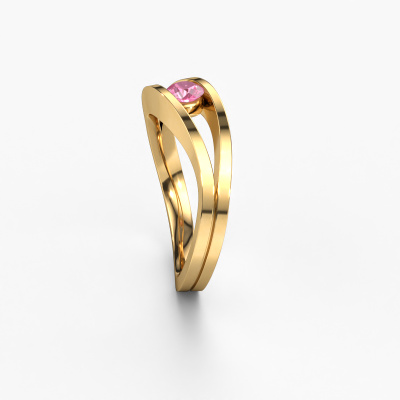 This 14 Carat gold ring is called Sigrid 1 and is set with 3.7 mm pink sapphire. This design gold engagement ring is a true masterpiece! Our expert goldsmith uses special techniques during crafting of this tension set ring to make sure the pink sapphire of this gold ring is fixed properly. The effect is that light fall reflects beautifully on the gemstone, which gives the ring its maximum shine and glamorous appearance. The result is a unique ring, with a trendy appearance, passionately handcrafted to perfection by our artisan goldsmith. A one-of-a-kind ring, designed for the love of your life! This jewel is made to shine bright around your finger. Each jewel is hand made with love by our goldsmiths.By using our modern techniques, we can design and customize the finest quality jewels with the utmost care for you. Our engagement rings are always priced 30 percent lower than other jewellers. We make engagement rings to order so we don't have to maintain a large stock. If you have a certain budget, we are more than happy to advice you accordingly.Different styles of new rings are made daily by our team. Perhaps you have found a solitaire engagement ring somewhere. One you would like to give to your loved one. Please feel free to share your thoughts and design with our jewel designers. We would love to turn your design into a design engagement ring. You can follow the development of your ring design because we use very detailed 3D drawings. On top of that, you can order a dummy of the design. A dummy is a plastic ring, which can be shaped according your ring design. You can try it on and check if the engagement ring is up to standard. We will gladly send you a non-binding offer, based on a fair price/ quality ratio. The offer will baffle you, considering the quality of the ring and gemstones.To make it easier for you, we offer a 30 day return policy. Check our terms and conditions.