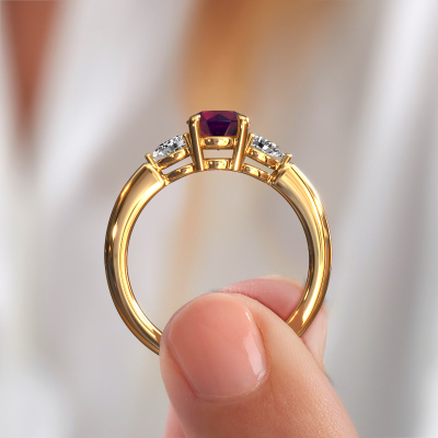 This 14 Carat gold ring is called Chanou RND and is set with 6 mm rhodolite. Does your girlfriend fancy exclusive jewellery? Or would you like to show her that she deserves the finest jewellery? This gold ring is pure craftsmanship, love and passion combined with the latest techniques coming together in perfect harmony. It requires a keen eye, patience and a skilful hand to mould this ring into perfection. Just the job for our expert goldsmith! The rhodolite set gemstones gives this gold ring an extra glamorous appearance. Customize the style of the charming engagement ring to her liking with a wide variety of precious metals and gemstones which you select. That is how you create a unique ring for the most exclusive woman in your life! This jewel is made to shine bright around your finger. Each jewel is hand made with love by our goldsmiths.By using a combination of the latest modern techniques, combined with ancient crafting, we can make all our engagement rings in our own studio. Each jewel is made to order. This is advantageous because we can offer you a price you won't find anywhere else.Our team adds new designs to our online collection daily. Our designers and goldsmiths work together in creating the best design. We strive to offer a diverse collection of jewels. Perhaps you have a specific jewel design in mind. One you came across somewhere. Please contact us for a free consultation. We will make you an offer, based on a fair price/ quality ratio, that will baffle you.To make it easier for you, we offer a 30 day return policy. Check our terms and conditions.