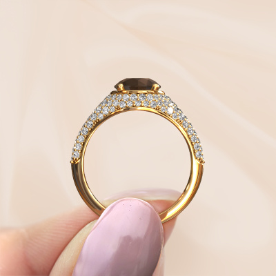 This 14 Carat gold ring is called Lovella and is set with 7 mm smokey quartz. Does your girlfriend fancy exclusive jewellery? Or would you like to show her that she deserves the finest jewellery? This gold ring is pure craftsmanship, love and passion combined with the latest techniques coming together in perfect harmony. It requires a keen eye, patience and a skilful hand to mould this ring into perfection. Just the job for our expert goldsmith! The smokey quartz set gemstones gives this gold ring an extra glamorous appearance. Customize the style of the micro pave engagement ring to her liking with a wide variety of precious metals and gemstones which you select. That is how you create a unique ring for the most exclusive woman in your life! This jewel is made just for you, with attention to detail and design.By using a combination of the latest modern techniques, combined with ancient crafting, we can make all our engagement rings in our own studio. Each jewel is made to order. This is advantageous because we can offer you a price you won't find anywhere else.Our team adds new designs to our online collection daily. Our designers and goldsmiths work together in creating the best design. We strive to offer a diverse collection of jewels. Perhaps you have a specific jewel design in mind. One you came across somewhere. Please contact us for a free consultation. We will make you an offer, based on a fair price/ quality ratio, that will baffle you.To make it easier for you, we offer a 30 day return policy. Check our terms and conditions.