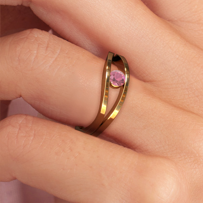 This 14 Carat gold ring is called Sigrid 1 and is set with 3.7 mm tourmaline pink. This design gold engagement ring is a true masterpiece! Our expert goldsmith uses special techniques during crafting of this tension set ring to make sure the tourmaline pink of this gold ring is fixed properly. The effect is that light fall reflects beautifully on the gemstone, which gives the ring its maximum shine and glamorous appearance. The result is a unique ring, with a trendy appearance, passionately handcrafted to perfection by our artisan goldsmith. A one-of-a-kind ring, designed for the love of your life! This jewel is made to shine bright around your finger. Each jewel is hand made with love by our goldsmiths.By using our modern techniques, we can design and customize the finest quality jewels with the utmost care for you. Our engagement rings are always priced 30 percent lower than other jewellers. We make engagement rings to order so we don't have to maintain a large stock. If you have a certain budget, we are more than happy to advice you accordingly.Different styles of new rings are made daily by our team. Perhaps you have found a solitaire engagement ring somewhere. One you would like to give to your loved one. Please feel free to share your thoughts and design with our jewel designers. We would love to turn your design into a design engagement ring. You can follow the development of your ring design because we use very detailed 3D drawings. On top of that, you can order a dummy of the design. A dummy is a plastic ring, which can be shaped according your ring design. You can try it on and check if the engagement ring is up to standard. We will gladly send you a non-binding offer, based on a fair price/ quality ratio. The offer will baffle you, considering the quality of the ring and gemstones.To make it easier for you, we offer a 30 day return policy. Check our terms and conditions.