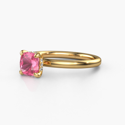This 14 Carat gold ring is called Simone CUS 2 and is set with pink sapphire. Are you in the market for a unique gold engagement ring with a trendy appearance? Then this ring is perfect for you. Simply customize to your or her liking. This unique graceful engagement ring is set with exquisite pink sapphire. It has been carefully selected because your engagement ring must be adorned with nothing but the most beautiful gemstone. Our expert goldsmith will create your ring in our own studio where the pink sapphire will be set with great care. The ring will then be polished to perfection to give it that extra sparkle. The perfect ring for your significant other! By using a combination of the latest modern techniques, combined with ancient crafting, we can make all our engagement rings in our own studio. Each jewel is made to order. This is advantageous because we can offer you a price you won't find anywhere else.Our team adds new designs to our online collection daily. Our designers and goldsmiths work together in creating the best design. We strive to offer a diverse collection of jewels. Perhaps you have a specific jewel design in mind. One you came across somewhere. Please contact us for a free consultation. We will make you an offer, based on a fair price/ quality ratio, that will baffle you.To make it easier for you, we offer a 30 day return policy. Check our terms and conditions.