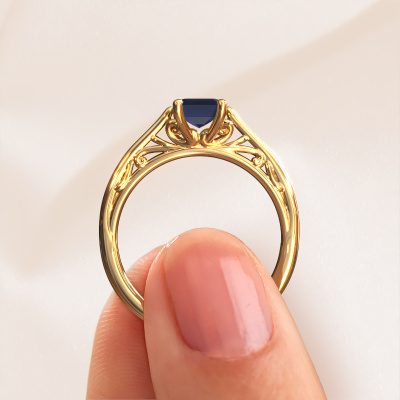 This 14 Carat gold ring is called Shannon eme and is set with sapphire. An extraordinary gold vintage ring. One that will surely make the love of your life shine like a diamond! That is what we hope to achieve. This fantasy engagement ring is set with exquisite sapphire. Whichever gemstone you choose from our selection, is up to you. The gemstone is selected with great care because we believe your engagement ring must be adorned with nothing but the most beautiful gemstone. Wouldn't you agree? Our expert goldsmith will design your ring in our own artisan studio, where the sapphire will be set with great precision. The ring will then be polished till it is absolutely perfect. Nothing but the best for the love of your life! This jewel is unique in every way! Simply customize to your liking,Are you on a budget? Please feel free to contact us, so we can go discuss your options. We offer our engagement rings at guaranteed best price, because we make them to order. You won't find such a price anywhere else!Our designers and goldsmiths work together each day, creating new jewels. Perhaps you have found a nice fantasy engagement ring somewhere, which can be used to customize your unique ring. Please feel free to contact us. We will make you an offer, based on a fair price/ quality ratio, which will amaze you.To make it easier for you, we offer a 30 day return policy. Check our terms and conditions.