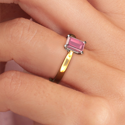 This 14 Carat gold ring is called Mignon eme 1 and is set with tourmaline pink. Are you in the market for a unique gold engagement ring with a trendy appearance? Then this ring is perfect for you. Simply customize to your or her liking. This contemporary charming engagement ring is set with exquisite tourmaline pink. It has been carefully selected because your engagement ring must be adorned with nothing but the most beautiful gemstone. Our expert goldsmith will create your ring in our own studio where the tourmaline pink will be set with great care. The ring will then be polished to perfection to give it that extra sparkle. The perfect ring for your significant other! After receiving your order, our goldsmiths will start the creative process of making your Mignon eme 1 engagement ring. We don't keep stock. This is advantageous because these costs will not be passed on to you. Therefore, we can offer jewellery at exceptionally low prices.Our team adds new designs to our online collection daily. Our designers and goldsmiths work together in creating the best design. We strive to offer a diverse collection of jewels. Perhaps you have a specific jewel design in mind. One you came across somewhere. Please contact us for a free consultation. We will make you an offer, based on a fair price/ quality ratio, that will baffle you.To make it easier for you, we offer a 30 day return policy. Check our terms and conditions.