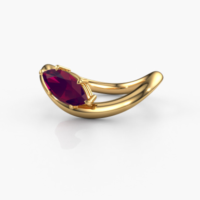 This 14 Carat gold ring is called Chloe MRQ and is set with rhodolite. Are you in the market for a unique gold engagement ring with a trendy appearance? Then this ring is perfect for you. Simply customize to your or her liking. This modern twist