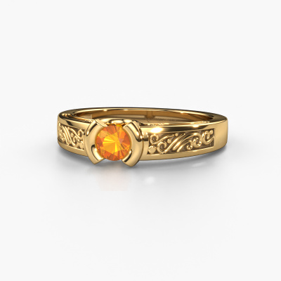 This 14 Carat gold ring is called Elena and is set with citrin. An extraordinary gold vintage ring. One that will surely make the love of your life shine like a diamond! That is what we hope to achieve. This vintage engagement ring is set with exquisite citrin. Whichever gemstone you choose from our selection, is up to you. The gemstone is selected with great care because we believe your engagement ring must be adorned with nothing but the most beautiful gemstone. Wouldn't you agree? Our expert goldsmith will design your ring in our own artisan studio, where the citrin will be set with great precision. The ring will then be polished till it is absolutely perfect. Nothing but the best for the love of your life! This jewel is made just for you, with attention to detail and design.After receiving your order, our goldsmiths will passionately start the creative process of making your engagement ring in our own studio. Because we don't have a big stockpile, these costs will not be passed on to you. Our pricing is proof of that! We offer top quality jewels at lowest price, guaranteed.Our team adds new designs to our online collection daily. Our designers and goldsmiths work together in creating the best design. We strive to offer a diverse collection of jewels. Perhaps you have a specific jewel design in mind. One you came across somewhere. Please contact us for a free consultation. We will make you an offer, based on a fair price/ quality ratio, that will baffle you.To make it easier for you, we offer a 30 day return policy. Check our terms and conditions.