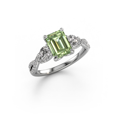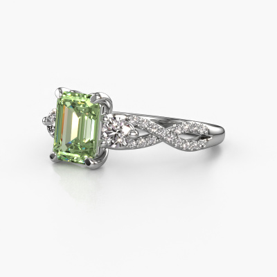 This platinum ring is called Marilou EME and is set with green lab grown diamond. How would you describe the style of the love of your life? Does she have a unique sense of style? This stunning split band platinum engagement ring can be custom-made to your own or her liking. Our green lab grown diamonds gemstones have been carefully selected because we believe your luxury engagement ring must be adorned with nothing but the most beautiful gemstone. Don't you agree? This jewel is made to shine bright around your finger. Each jewel is hand made with love by our goldsmiths.After receiving your order, our goldsmiths will start the creative process of making your Marilou EME engagement ring. We don't keep stock. This is advantageous because these costs will not be passed on to you. Therefore, we can offer jewellery at exceptionally low prices.Do you have a specific ring in mind? One you came across somewhere. Please feel free to tell us your wishes and we will turn your design into a unique engagement ring. You can follow the development of your ring design because we use 3D drawings. This gives you a realistic preview of your design. We will gladly send you a non-binding offer, based on a fair price/ quality ratio. It will amaze you.To make it easier for you, we offer a 30 day return policy. Check our terms and conditions.