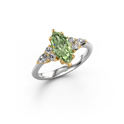 This 14 Carat white gold ring is called Melani MRQ and is set with 11x5.5 mm green lab grown diamond. What is it that makes your relationship unique? What is it about her that makes you want to bend down on one knee? The unique bond between the two of you is emphasized by an equally unique ring. A one of a kind graceful cluster engagement ring made especially for her. That is why this trendy ring fits her like a glove. Each specific detail of this graceful white gold green lab grown diamond set engagement ring is hand-picked, crafted and polished by our expert goldsmith. The result is an exquisite ring, unique and perfectly crafted to perfection. That is what our expert Goldsmiths strive for. This jewel is made just for you, with attention to detail and design.After receiving your order, our goldsmiths will passionately start the creative process of making your engagement ring in our own studio. Because we don't have a big stockpile, these costs will not be passed on to you. Our pricing is proof of that! We offer top quality jewels at lowest price, guaranteed.Do you have a specific ring in mind? One you came across somewhere. Please feel free to tell us your wishes and we will turn your design into a unique engagement ring. You can follow the development of your ring design because we use 3D drawings. This gives you a realistic preview of your design. We will gladly send you a non-binding offer, based on a fair price/ quality ratio. It will amaze you.To make it easier for you, we offer a 30 day return policy. Check our terms and conditions.