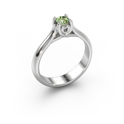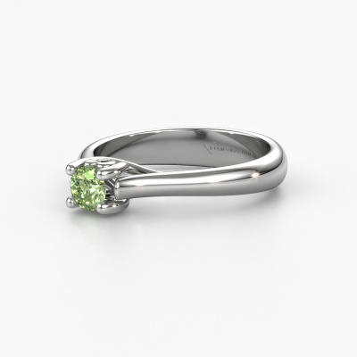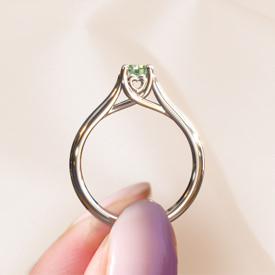 The ring shown above is called the Nisa, we call this a solitaire ring because it contains a single gemstone. The engagement ring is made in platinum and has a round green lab grown diamond of 4.2 mm. The cool thing about our configurator is that you can compile your own piece of jewellery, into a completely personalized one. This solitaire ring is crafted in the precious metals platinum with platinum, but of course you are free to pick your own colours. Each piece of jewellery is made by a team of passionate goldsmiths and jewel designers. This will make your crown jewel truly eye-catching.The solitaire ring is a special type of engagement ring. Its open prong setting allows light to strike the gemstone from various angles. This unique engagement ring is a stunning eye-catcher because of the high positioning of the gemstone. In order for you to commemorate your proposal with a unique ring, we carefully adorn this solitaire ring by hand. The love of your life deserves nothing but the best.
