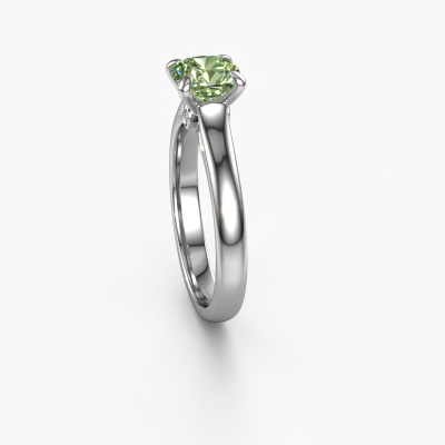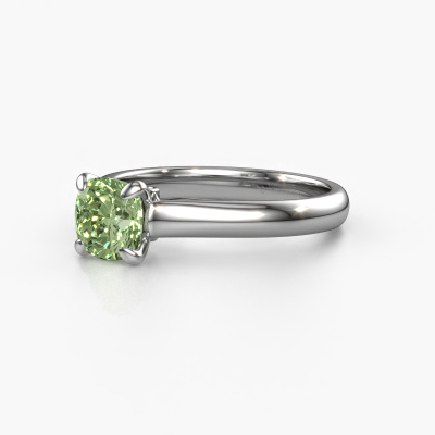 The ring shown above is called the Valorie cus 1, we call this a solitaire ring because it contains a single gemstone. The engagement ring is made in 14 Carat white gold and has a cushion green lab grown diamond of 6 mm. The cool thing about our configurator is that you can compile your own piece of jewellery, into a completely personalized one. This solitaire ring is crafted in the precious metals white gold with white gold, but of course you are free to pick your own colours. Each piece of jewellery is made to shine bright around your finger. Each jewel is hand made with love by our goldsmiths.The solitaire ring is a special type of engagement ring. Its open prong setting allows light to strike the gemstone from various angles. This classic engagement ring is a stunning eye-catcher because of the high positioning of the gemstone. In order for you to commemorate your proposal with a unique ring, we carefully adorn this solitaire ring by hand. The love of your life deserves nothing but the best. Are you on a budget? Please feel free to contact us, so we can go discuss your options. We offer our engagement rings at guaranteed best price, because we make them to order. You won't find such a price anywhere else!Have you found a specific engagement ring somewhere which you would like to give to your loved one? Please feel free to express your wishes to our jewel designers because we would be honoured to turn your design into a classic engagement ring. You can follow the development of your ring design because we use 3D drawings. This gives you a realistic preview of how your design will look. You can also preorder a dummy. A dummy is a plastic ring, which can be shaped according your ring design. You can try it on and check if its width and size are suitable for you. We will gladly send you a non-binding offer, based on a fair price/ quality ratio. It will amaze you, considering the quality of the ring and gemstones.To make it easier for you, we offer a 30 day return policy. Check our terms and conditions.