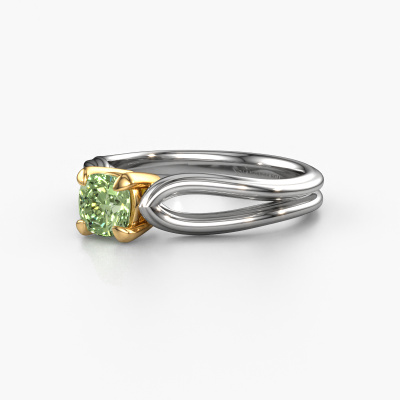 The ring shown above is called the Antonia cus 1, we call this a solitaire ring because it contains a single gemstone. The engagement ring is made in 14 Carat white gold and has a cushion green lab grown diamond of 5 mm. The cool thing about our configurator is that you can compile your own piece of jewellery, into a completely personalized one. This solitaire ring is crafted in the precious metals white gold with gold, but of course you are free to pick your own colours. Each piece of jewellery is made by a team of passionate goldsmiths and jewel designers. This will make your crown jewel truly eye-catching.The solitaire ring is a special type of engagement ring. Its open prong setting allows light to strike the gemstone from various angles. This fantasy engagement ring is a stunning eye-catcher because of the high positioning of the gemstone. In order for you to commemorate your proposal with a unique ring, we carefully adorn this solitaire ring by hand. The love of your life deserves nothing but the best. Are you on a budget? Please feel free to contact us, so we can go discuss your options. We offer our engagement rings at guaranteed best price, because we make them to order. You won't find such a price anywhere else!Our team adds new designs to our online collection daily. Our designers and goldsmiths work together in creating the best design. We strive to offer a diverse collection of jewels. Perhaps you have a specific jewel design in mind. One you came across somewhere. Please contact us for a free consultation. We will make you an offer, based on a fair price/ quality ratio, that will baffle you.To make it easier for you, we offer a 30 day return policy. Check our terms and conditions.