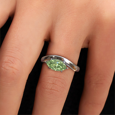 This 14 Carat white gold ring is called Floor MRQ and is set with 11x5.5 mm green lab grown diamond. What is it that makes your relationship unique? What is it about her that makes you want to bend down on one knee? The unique bond between the two