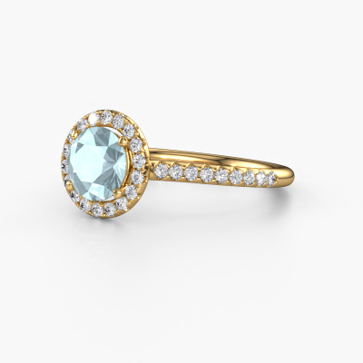 The ring shown above is called the Seline rnd 2. We call this type of ring a halo ring because it has one centre gemstone and a band that is also pave set with gemstones. The 14 Carat gold engagement ring is set with a round 6.5 mm aquamarine centre stone and the band is pave set with lab-grown diamonds. What makes this exclusive gold halo ring special are the smaller sized stones embracing the centre stone. This gorgeous engagement ring is called a halo ring because the smaller gemstones give the centre stone a halo of surrounding light. In order for the smaller stones to enhance the centre stone, they have to be placed so there is no interference of light. And that's when our expert goldsmiths come in. Each individual stone is carefully set in the ring by hand. During manufacturing, light fall is constantly monitored to make sure the special halo is still visible. In the end you get a unique engagement ring, with a aquamarine of your choosing at its centre. You can imagine the effect of a ring of such significance when you give it to her on her special day to shine. After receiving your order, our goldsmiths will start the creative process of making your Seline rnd 2 engagement ring. We don't keep stock. This is advantageous because these costs will not be passed on to you. Therefore, we can offer jewellery at exceptionally low prices.Our team adds new designs to our online collection daily. Our designers and goldsmiths work together in creating the best design. We strive to offer a diverse collection of jewels. Perhaps you have a specific jewel design in mind. One you came across somewhere. Please contact us for a free consultation. We will make you an offer, based on a fair price/ quality ratio, that will baffle you.To make it easier for you, we offer a 30 day return policy. Check our terms and conditions.