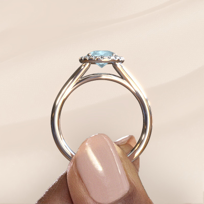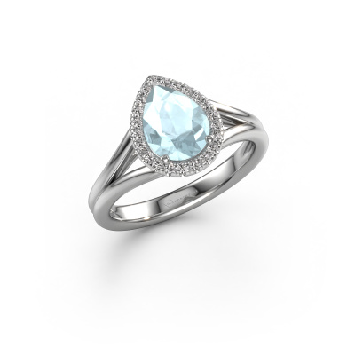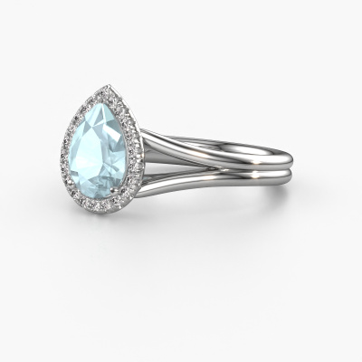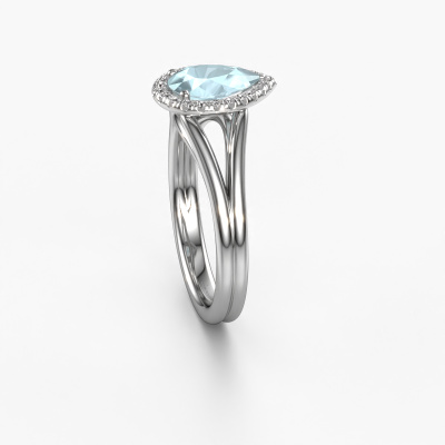 This platinum ring is called Verla pear 1 and is set with 8x6 mm aquamarine. This exclusive platinum halo engagement ring is a true work of art! The ornaments are crafted with a lot of patience and great passion. In order to create this ring with great precision, this craft requires a keen eye and skilful hand. A challenge which ignites a fire in our expert goldsmith. The exquisite aquamarine are set in a special way so they stand out even more. This gives the ring an even more glamorous appearance. The graceful engagement ring is actually unique on its own because of the gemstones which we carefully select especially for this ring. On top of that you select the precious metals which will be used to create a unique ring for the most extraordinary woman in your life! This jewel is made to shine bright around your finger. Each jewel is hand made with love by our goldsmiths.By using a combination of the latest modern techniques, combined with ancient crafting, we can make all our engagement rings in our own studio. Each jewel is made to order. This is advantageous because we can offer you a price you won't find anywhere else.Have you found a specific engagement ring somewhere which you would like to give to your loved one? Please feel free to express your wishes to our jewel designers because we would be honoured to turn your design into a luxury engagement ring. You can follow the development of your ring design because we use 3D drawings. This gives you a realistic preview of how your design will look. You can also preorder a dummy. A dummy is a plastic ring, which can be shaped according your ring design. You can try it on and check if its width and size are suitable for you. We will gladly send you a non-binding offer, based on a fair price/ quality ratio. It will amaze you, considering the quality of the ring and gemstones.To make it easier for you, we offer a 30 day return policy. Check our terms and conditions.