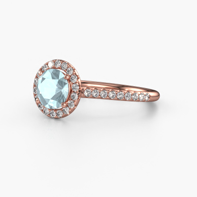 The ring shown above is called the Seline rnd 2. We call this type of ring a halo ring because it has one centre gemstone and a band that is also pave set with gemstones. The 14 Carat rose gold engagement ring is set with a round 6.5 mm aquamarine centre stone and the band is pave set with lab-grown diamonds. What makes this exclusive rose gold halo ring special are the smaller sized stones embracing the centre stone. This gorgeous engagement ring is called a halo ring because the smaller gemstones give the centre stone a halo of surrounding light. In order for the smaller stones to enhance the centre stone, they have to be placed so there is no interference of light. And that's when our expert goldsmiths come in. Each individual stone is carefully set in the ring by hand. During manufacturing, light fall is constantly monitored to make sure the special halo is still visible. In the end you get a unique engagement ring, with a aquamarine of your choosing at its centre. You can imagine the effect of a ring of such significance when you give it to her on her special day to shine. After receiving your order, our goldsmiths will start the creative process of making your Seline rnd 2 engagement ring. We don't keep stock. This is advantageous because these costs will not be passed on to you. Therefore, we can offer jewellery at exceptionally low prices.Our team adds new designs to our online collection daily. Our designers and goldsmiths work together in creating the best design. We strive to offer a diverse collection of jewels. Perhaps you have a specific jewel design in mind. One you came across somewhere. Please contact us for a free consultation. We will make you an offer, based on a fair price/ quality ratio, that will baffle you.To make it easier for you, we offer a 30 day return policy. Check our terms and conditions.