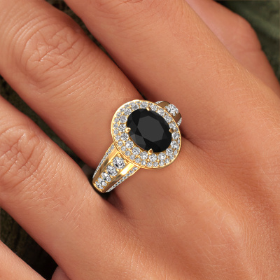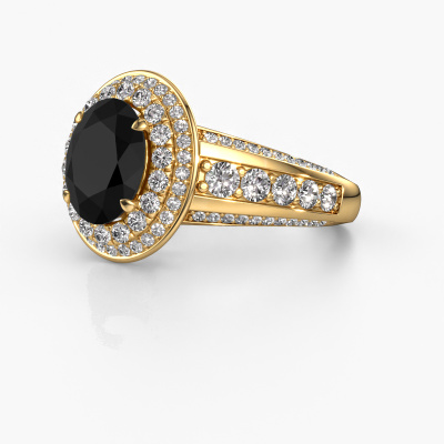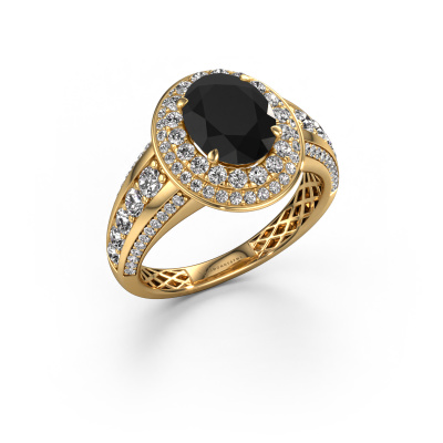 This 14 Carat gold ring is called Nancie and is set with 3.25 crt black diamond. This exclusive gold halo engagement ring is a true work of art! The ornaments are crafted with a lot of patience and great passion. In order to create this ring with great precision, this craft requires a keen eye and skilful hand. A challenge which ignites a fire in our expert goldsmith. The exquisite black diamonds are set in a special way so they stand out even more. This gives the ring an even more glamorous appearance. The graceful engagement ring is actually unique on its own because of the gemstones which we carefully select especially for this ring. On top of that you select the precious metals which will be used to create a unique ring for the most extraordinary woman in your life! This jewel is created to add sparkle to your finger, each jewel is lovingly made by hand by our goldsmiths.Are you on a budget? Please feel free to contact us, so we can go discuss your options. We offer our engagement rings at guaranteed best price, because we make them to order. You won't find such a price anywhere else!Our designers and goldsmiths work together each day, creating new jewels. Perhaps you have found a nice classic engagement ring somewhere, which can be used to customize your unique ring. Please feel free to contact us. We will make you an offer, based on a fair price/ quality ratio, which will amaze you.To make it easier for you, we offer a 30 day return policy. Check our terms and conditions.