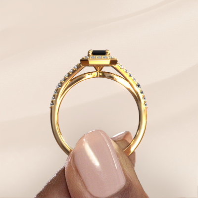 This 14 Carat gold ring is called Pamela EME and is set with 1.127 crt black diamond. This exclusive gold halo engagement ring is a true work of art! The ornaments are crafted with a lot of patience and great passion. In order to create this ring with great precision, this craft requires a keen eye and skilful hand. A challenge which ignites a fire in our expert goldsmith. The exquisite black diamonds are set in a special way so they stand out even more. This gives the ring an even more glamorous appearance. The split band engagement ring is actually unique on its own because of the gemstones which we carefully select especially for this ring. On top of that you select the precious metals which will be used to create a unique ring for the most extraordinary woman in your life! This jewel is made just for you, with attention to detail and design.Because we design and deliver our own rings, we can offer you a engagement ring at a price you won't find anywhere else. A ring is made to order, which helps prevent excess supplies, so we can make you a great price offer. We understand it feels risky, buying your engagement ring online, but we will gladly assist in the designing process, taking your budget into consideration.Our team adds new designs to our online collection daily. Our designers and goldsmiths work together in creating the best design. We strive to offer a diverse collection of jewels. Perhaps you have a specific jewel design in mind. One you came across somewhere. Please contact us for a free consultation. We will make you an offer, based on a fair price/ quality ratio, that will baffle you.To make it easier for you, we offer a 30 day return policy. Check our terms and conditions.