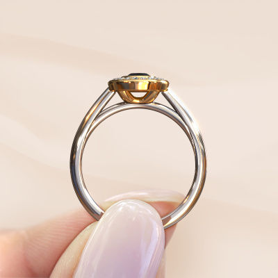 The ring shown above is called the Noud 1 OVL. We call this type of ring a halo ring because it has one centre gemstone and a band that is also pave set with gemstones. The 14 Carat white gold engagement ring is set with a oval 0.60 crt black diamond centre stone and the band is pave set with lab-grown diamonds. What makes this classic white gold halo ring special are the smaller sized stones embracing the centre stone. This gorgeous engagement ring is called a halo ring because the smaller gemstones give the centre stone a halo of surrounding light. In order for the smaller stones to enhance the centre stone, they have to be placed so there is no interference of light. And that's when our expert goldsmiths come in. Each individual stone is carefully set in the ring by hand. During manufacturing, light fall is constantly monitored to make sure the special halo is still visible. In the end you get a unique engagement ring, with a black diamond of your choosing at its centre. You can imagine the effect of a ring of such significance when you give it to her on her special day to shine. By using a combination of the latest modern techniques, combined with ancient crafting, we can make all our engagement rings in our own studio. Each jewel is made to order. This is advantageous because we can offer you a price you won't find anywhere else.Our team adds new designs to our online collection daily. Our designers and goldsmiths work together in creating the best design. We strive to offer a diverse collection of jewels. Perhaps you have a specific jewel design in mind. One you came across somewhere. Please contact us for a free consultation. We will make you an offer, based on a fair price/ quality ratio, that will baffle you.To make it easier for you, we offer a 30 day return policy. Check our terms and conditions.