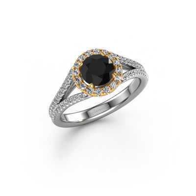 This 14 Carat white gold ring is called Verla rnd 2 and is set with 1.72 crt black diamond. This exclusive white gold halo engagement ring is a true work of art! The ornaments are crafted with a lot of patience and great passion. In order to create this ring with great precision, this craft requires a keen eye and skilful hand. A challenge which ignites a fire in our expert goldsmith. The exquisite black diamonds are set in a special way so they stand out even more. This gives the ring an even more glamorous appearance. The split band engagement ring is actually unique on its own because of the gemstones which we carefully select especially for this ring. On top of that you select the precious metals which will be used to create a unique ring for the most extraordinary woman in your life! This jewel is made just for you, with attention to detail and design.Because we design and deliver our own rings, we can offer you a engagement ring at a price you won't find anywhere else. A ring is made to order, which helps prevent excess supplies, so we can make you a great price offer. We understand it feels risky, buying your engagement ring online, but we will gladly assist in the designing process, taking your budget into consideration.Our team adds new designs to our online collection daily. Our designers and goldsmiths work together in creating the best design. We strive to offer a diverse collection of jewels. Perhaps you have a specific jewel design in mind. One you came across somewhere. Please contact us for a free consultation. We will make you an offer, based on a fair price/ quality ratio, that will baffle you.To make it easier for you, we offer a 30 day return policy. Check our terms and conditions.