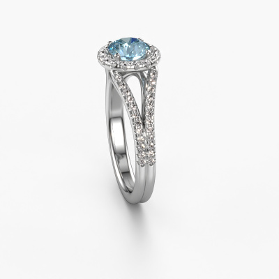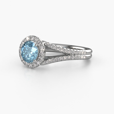 This platinum ring is called Verla rnd 2 and is set with 6.5 mm blue lab grown diamond. This exclusive platinum halo engagement ring is a true work of art! The ornaments are crafted with a lot of patience and great passion. In order to create this ring with great precision, this craft requires a keen eye and skilful hand. A challenge which ignites a fire in our expert goldsmith. The exquisite blue lab grown diamonds are set in a special way so they stand out even more. This gives the ring an even more glamorous appearance. The split band engagement ring is actually unique on its own because of the gemstones which we carefully select especially for this ring. On top of that you select the precious metals which will be used to create a unique ring for the most extraordinary woman in your life! This jewel is made just for you, with attention to detail and design.Because we design and deliver our own rings, we can offer you a engagement ring at a price you won't find anywhere else. A ring is made to order, which helps prevent excess supplies, so we can make you a great price offer. We understand it feels risky, buying your engagement ring online, but we will gladly assist in the designing process, taking your budget into consideration.Our team adds new designs to our online collection daily. Our designers and goldsmiths work together in creating the best design. We strive to offer a diverse collection of jewels. Perhaps you have a specific jewel design in mind. One you came across somewhere. Please contact us for a free consultation. We will make you an offer, based on a fair price/ quality ratio, that will baffle you.To make it easier for you, we offer a 30 day return policy. Check our terms and conditions.