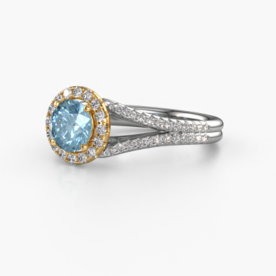 This 14 Carat white gold ring is called Verla rnd 2 and is set with 6.5 mm blue lab grown diamond. This exclusive white gold halo engagement ring is a true work of art! The ornaments are crafted with a lot of patience and great passion. In order to create this ring with great precision, this craft requires a keen eye and skilful hand. A challenge which ignites a fire in our expert goldsmith. The exquisite blue lab grown diamonds are set in a special way so they stand out even more. This gives the ring an even more glamorous appearance. The split band engagement ring is actually unique on its own because of the gemstones which we carefully select especially for this ring. On top of that you select the precious metals which will be used to create a unique ring for the most extraordinary woman in your life! This jewel is made just for you, with attention to detail and design.Because we design and deliver our own rings, we can offer you a engagement ring at a price you won't find anywhere else. A ring is made to order, which helps prevent excess supplies, so we can make you a great price offer. We understand it feels risky, buying your engagement ring online, but we will gladly assist in the designing process, taking your budget into consideration.Our team adds new designs to our online collection daily. Our designers and goldsmiths work together in creating the best design. We strive to offer a diverse collection of jewels. Perhaps you have a specific jewel design in mind. One you came across somewhere. Please contact us for a free consultation. We will make you an offer, based on a fair price/ quality ratio, that will baffle you.To make it easier for you, we offer a 30 day return policy. Check our terms and conditions.