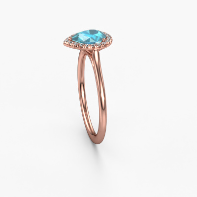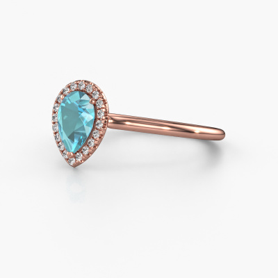 This 14 Carat rose gold ring is called Seline per 1 and is set with 7x5 mm blue topaz. This exclusive rose gold halo engagement ring is a true work of art! The ornaments are crafted with a lot of patience and great passion. In order to create this ring with great precision, this craft requires a keen eye and skilful hand. A challenge which ignites a fire in our expert goldsmith. The exquisite blue topaz are set in a special way so they stand out even more. This gives the ring an even more glamorous appearance. The charming engagement ring is actually unique on its own because of the gemstones which we carefully select especially for this ring. On top of that you select the precious metals which will be used to create a unique ring for the most extraordinary woman in your life! This jewel is made with passion and love by one of our master goldsmiths.After receiving your order, our goldsmiths will start the creative process of making your Seline per 1 engagement ring. We don't keep stock. This is advantageous because these costs will not be passed on to you. Therefore, we can offer jewellery at exceptionally low prices.Our team adds new designs to our online collection daily. Our designers and goldsmiths work together in creating the best design. We strive to offer a diverse collection of jewels. Perhaps you have a specific jewel design in mind. One you came across somewhere. Please contact us for a free consultation. We will make you an offer, based on a fair price/ quality ratio, that will baffle you.To make it easier for you, we offer a 30 day return policy. Check our terms and conditions.
