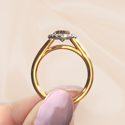 This 14 Carat gold ring is called Verla ovl 1 and is set with 1.25 crt brown diamond. This exclusive gold halo engagement ring is a true work of art! The ornaments are crafted with a lot of patience and great passion. In order to create this ring with great precision, this craft requires a keen eye and skilful hand. A challenge which ignites a fire in our expert goldsmith. The exquisite brown diamonds are set in a special way so they stand out even more. This gives the ring an even more glamorous appearance. The split band engagement ring is actually unique on its own because of the gemstones which we carefully select especially for this ring. On top of that you select the precious metals which will be used to create a unique ring for the most extraordinary woman in your life! This jewel is made to shine bright around your finger. Each jewel is hand made with love by our goldsmiths.By using a combination of the latest modern techniques, combined with ancient crafting, we can make all our engagement rings in our own studio. Each jewel is made to order. This is advantageous because we can offer you a price you won't find anywhere else.Do you have a specific ring in mind? One you came across somewhere. Please feel free to tell us your wishes and we will turn your design into a unique engagement ring. You can follow the development of your ring design because we use 3D drawings. This gives you a realistic preview of your design. We will gladly send you a non-binding offer, based on a fair price/ quality ratio. It will amaze you.To make it easier for you, we offer a 30 day return policy. Check our terms and conditions.
