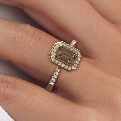 This 14 Carat rose gold ring is called Dodie 2 eme and is set with 1.362 crt brown diamond. This exclusive rose gold halo engagement ring is a true work of art! The ornaments are crafted with a lot of patience and great passion. In order to create this ring with great precision, this craft requires a keen eye and skilful hand. A challenge which ignites a fire in our expert goldsmith. The exquisite brown diamonds are set in a special way so they stand out even more. This gives the ring an even more glamorous appearance. The pretty engagement ring is actually unique on its own because of the gemstones which we carefully select especially for this ring. On top of that you select the precious metals which will be used to create a unique ring for the most extraordinary woman in your life! This jewel is made just for you, with attention to detail and design.Because we design and deliver our own rings, we can offer you a engagement ring at a price you won't find anywhere else. A ring is made to order, which helps prevent excess supplies, so we can make you a great price offer. We understand it feels risky, buying your engagement ring online, but we will gladly assist in the designing process, taking your budget into consideration.Do you have a specific ring in mind? One you came across somewhere. Please feel free to tell us your wishes and we will turn your design into a unique engagement ring. You can follow the development of your ring design because we use 3D drawings. This gives you a realistic preview of your design. We will gladly send you a non-binding offer, based on a fair price/ quality ratio. It will amaze you.To make it easier for you, we offer a 30 day return policy. Check our terms and conditions.
