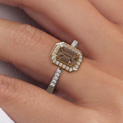 This 14 Carat white gold ring is called Dodie 2 eme and is set with 1.362 crt brown diamond. This exclusive white gold halo engagement ring is a true work of art! The ornaments are crafted with a lot of patience and great passion. In order to create this ring with great precision, this craft requires a keen eye and skilful hand. A challenge which ignites a fire in our expert goldsmith. The exquisite brown diamonds are set in a special way so they stand out even more. This gives the ring an even more glamorous appearance. The pretty engagement ring is actually unique on its own because of the gemstones which we carefully select especially for this ring. On top of that you select the precious metals which will be used to create a unique ring for the most extraordinary woman in your life! This jewel is made just for you, with attention to detail and design.Because we design and deliver our own rings, we can offer you a engagement ring at a price you won't find anywhere else. A ring is made to order, which helps prevent excess supplies, so we can make you a great price offer. We understand it feels risky, buying your engagement ring online, but we will gladly assist in the designing process, taking your budget into consideration.Do you have a specific ring in mind? One you came across somewhere. Please feel free to tell us your wishes and we will turn your design into a unique engagement ring. You can follow the development of your ring design because we use 3D drawings. This gives you a realistic preview of your design. We will gladly send you a non-binding offer, based on a fair price/ quality ratio. It will amaze you.To make it easier for you, we offer a 30 day return policy. Check our terms and conditions.