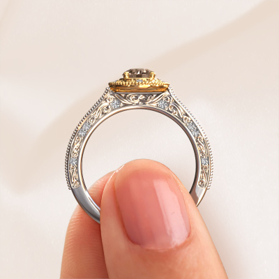This 14 Carat white gold ring is called Alice RND and is set with 0.68 crt brown diamond. An extraordinary white gold vintage ring. One that will surely make the love of your life shine like a diamond! That is what we hope to achieve. This vintage Engagement ring is set with exquisite brown diamond. Whichever gemstone you choose from our selection, is up to you. The gemstone is selected with great care because we believe your pearl edges Engagement ring must be adorned with nothing but the most beautiful gemstone. Wouldn't you agree? Our expert goldsmith will design your ring in our own crafting studio, where the brown diamond will be set with great precision. The ring will then be polished till it shines perfectly. Nothing but the best for the love of your life! This jewel is made to shine bright around your finger. Each jewel is hand made with love by our goldsmiths.Are you on a budget? Please feel free to contact us, so we can go discuss your options. We offer our Engagement rings at guaranteed best price, because we make them to order. You won't find such a price anywhere else!Our team adds new designs to our online collection daily. Our designers and goldsmiths work together in creating the best design. We strive to offer a diverse collection of jewels. Perhaps you have a specific jewel design in mind. One you came across somewhere. Please contact us for a free consultation. We will make you an offer, based on a fair price/ quality ratio, that will baffle you.To make it easier for you, we offer a 30 day return policy. Check our terms and conditions.