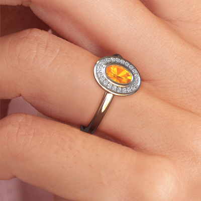 The ring shown above is called the Noud 1 OVL. We call this type of ring a halo ring because it has one centre gemstone and a band that is also pave set with gemstones. The platinum engagement ring is set with a oval 6x4 mm citrin centre stone and the band is pave set with lab-grown diamonds. What makes this classic platinum halo ring special are the smaller sized stones embracing the centre stone. This gorgeous engagement ring is called a halo ring because the smaller gemstones give the centre stone a halo of surrounding light. In order for the smaller stones to enhance the centre stone, they have to be placed so there is no interference of light. And that's when our expert goldsmiths come in. Each individual stone is carefully set in the ring by hand. During manufacturing, light fall is constantly monitored to make sure the special halo is still visible. In the end you get a unique engagement ring, with a citrin of your choosing at its centre. You can imagine the effect of a ring of such significance when you give it to her on her special day to shine. By using a combination of the latest modern techniques, combined with ancient crafting, we can make all our engagement rings in our own studio. Each jewel is made to order. This is advantageous because we can offer you a price you won't find anywhere else.Our team adds new designs to our online collection daily. Our designers and goldsmiths work together in creating the best design. We strive to offer a diverse collection of jewels. Perhaps you have a specific jewel design in mind. One you came across somewhere. Please contact us for a free consultation. We will make you an offer, based on a fair price/ quality ratio, that will baffle you.To make it easier for you, we offer a 30 day return policy. Check our terms and conditions.