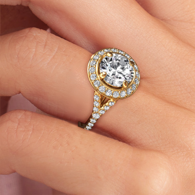 This 14 Carat gold ring is called Pamela RND and is set with 2.54 crt diamond. This exclusive gold halo engagement ring is a true work of art! The ornaments are crafted with a lot of patience and great passion. In order to create this ring with great precision, this craft requires a keen eye and skilful hand. A challenge which ignites a fire in our expert goldsmith. The exquisite diamonds are set in a special way so they stand out even more. This gives the ring an even more glamorous appearance. The ajour engagement ring is actually unique on its own because of the gemstones which we carefully select especially for this ring. On top of that you select the precious metals which will be used to create a unique ring for the most extraordinary woman in your life! This jewel is unique in every way! Simply customize to your liking,Because we design and deliver our own rings, we can offer you a engagement ring at a price you won't find anywhere else. A ring is made to order, which helps prevent excess supplies, so we can make you a great price offer. We understand it feels risky, buying your engagement ring online, but we will gladly assist in the designing process, taking your budget into consideration.Our team adds new designs to our online collection daily. Our designers and goldsmiths work together in creating the best design. We strive to offer a diverse collection of jewels. Perhaps you have a specific jewel design in mind. One you came across somewhere. Please contact us for a free consultation. We will make you an offer, based on a fair price/ quality ratio, that will baffle you.To make it easier for you, we offer a 30 day return policy. Check our terms and conditions.