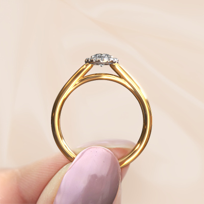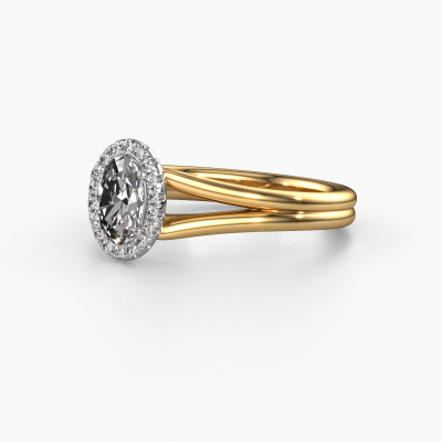 This 14 Carat gold ring is called Verla ovl 1 and is set with 0.49 crt diamond. This exclusive gold halo engagement ring is a true work of art! The ornaments are crafted with a lot of patience and great passion. In order to create this ring with great precision, this craft requires a keen eye and skilful hand. A challenge which ignites a fire in our expert goldsmith. The exquisite diamonds are set in a special way so they stand out even more. This gives the ring an even more glamorous appearance. The split band engagement ring is actually unique on its own because of the gemstones which we carefully select especially for this ring. On top of that you select the precious metals which will be used to create a unique ring for the most extraordinary woman in your life! This jewel is made to shine bright around your finger. Each jewel is hand made with love by our goldsmiths.By using a combination of the latest modern techniques, combined with ancient crafting, we can make all our engagement rings in our own studio. Each jewel is made to order. This is advantageous because we can offer you a price you won't find anywhere else.Do you have a specific ring in mind? One you came across somewhere. Please feel free to tell us your wishes and we will turn your design into a unique engagement ring. You can follow the development of your ring design because we use 3D drawings. This gives you a realistic preview of your design. We will gladly send you a non-binding offer, based on a fair price/ quality ratio. It will amaze you.To make it easier for you, we offer a 30 day return policy. Check our terms and conditions.