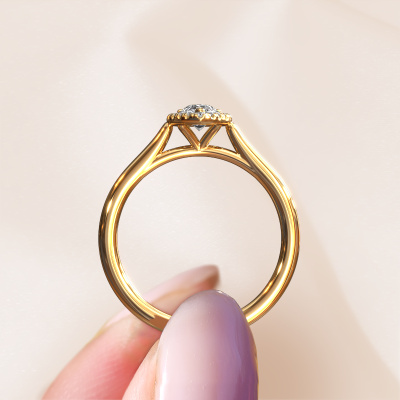 This 14 Carat gold ring is called Seline per 1 and is set with 0.54 crt diamond. This exclusive gold halo engagement ring is a true work of art! The ornaments are crafted with a lot of patience and great passion. In order to create this ring with great precision, this craft requires a keen eye and skilful hand. A challenge which ignites a fire in our expert goldsmith. The exquisite diamonds are set in a special way so they stand out even more. This gives the ring an even more glamorous appearance. The charming engagement ring is actually unique on its own because of the gemstones which we carefully select especially for this ring. On top of that you select the precious metals which will be used to create a unique ring for the most extraordinary woman in your life! This jewel is made with passion and love by one of our master goldsmiths.After receiving your order, our goldsmiths will start the creative process of making your Seline per 1 engagement ring. We don't keep stock. This is advantageous because these costs will not be passed on to you. Therefore, we can offer jewellery at exceptionally low prices.Our team adds new designs to our online collection daily. Our designers and goldsmiths work together in creating the best design. We strive to offer a diverse collection of jewels. Perhaps you have a specific jewel design in mind. One you came across somewhere. Please contact us for a free consultation. We will make you an offer, based on a fair price/ quality ratio, that will baffle you.To make it easier for you, we offer a 30 day return policy. Check our terms and conditions.